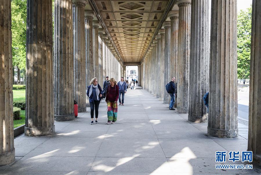 5月17日,在德国首都柏林的博物馆岛,行人经过老国家美术馆前的长廊。 博物馆岛坐落于德国柏林施普雷河上一座岛屿的北部,因该区域集中了老博物馆、新博物馆、老国家美术馆、博德博物馆、佩加蒙博物馆等知名博物馆而得名,其历史可追溯至1797年。博物馆岛上的博物馆收藏了从史前时期至20世纪的文物及艺术作品,堪称柏林乃至德国的一座文化宝库。柏林博物馆岛于1999年被联合国教科文组织列入世界文化遗产名录。 新华社记者 单宇琦 摄