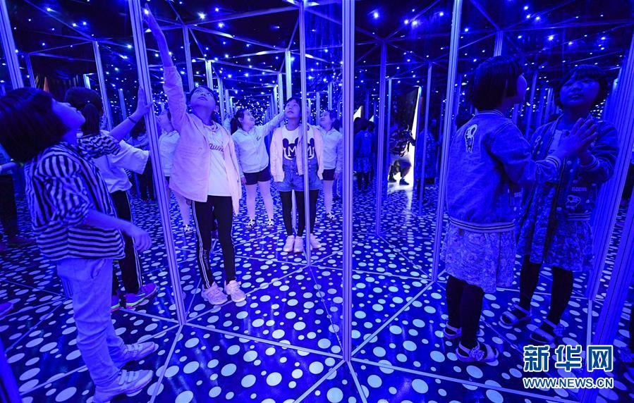 5月20日,在河北省武强周窝音乐体验中心,武强县周窝小学的孩子们在体验镜面迷宫。 当日,武强县周窝小学的孩子们走进武强周窝音乐体验中心,零距离体验声光电带来的科技魅力。5月19日至26日是2019年全国科技活动周。活动期间,河北省武强县开展了“音画情、科普行”科普宣传活动。 新华社记者 李晓果 摄