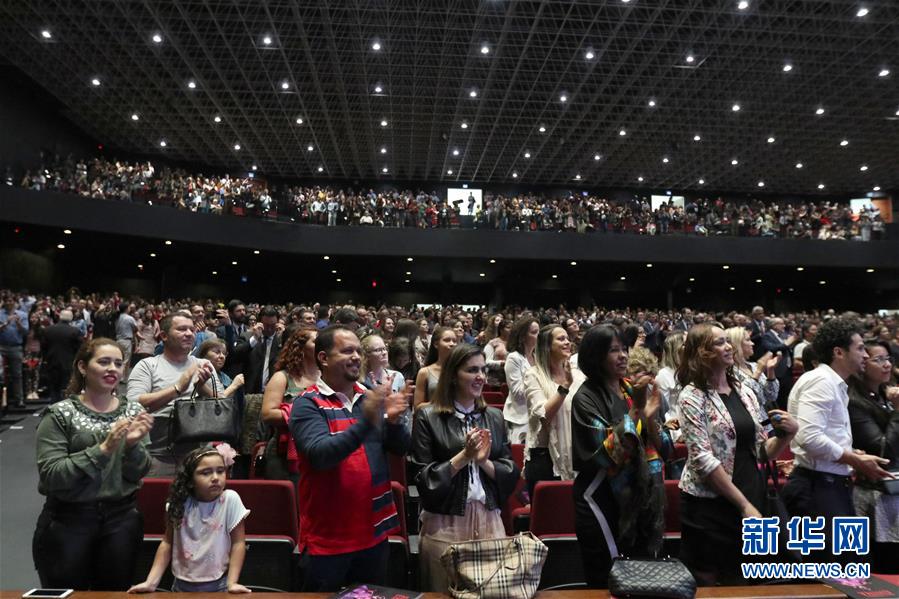 5月20日,在巴西首都巴西利亚,演出结束后观众起立鼓掌。 中国中央芭蕾舞团20日在巴西利亚为巴西首都的观众带来了一场古典与现代相接、中式与西式相容的芭蕾盛宴。 新华社发(刘宇摄)