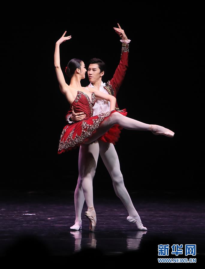 5月20日,在巴西首都巴西利亚,舞蹈演员邱芸婷(前)和武思聪(后)表演《堂·吉诃德》选段。 中国中央芭蕾舞团20日在巴西利亚为巴西首都的观众带来了一场古典与现代相接、中式与西式相容的芭蕾盛宴。 新华社发(刘宇摄)