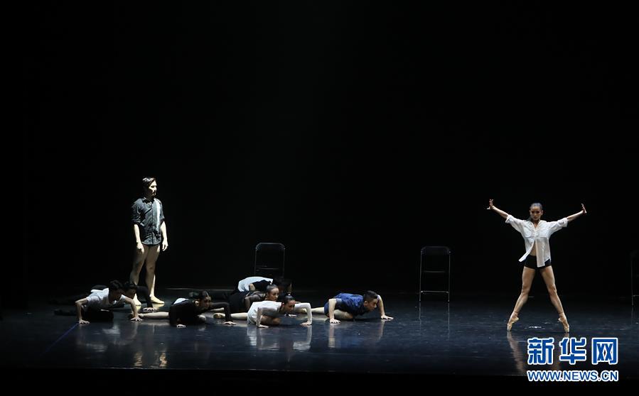 5月20日,在巴西首都巴西利亚,舞蹈演员表演现代舞《天黑请闭眼》。 中国中央芭蕾舞团20日在巴西利亚为巴西首都的观众带来了一场古典与现代相接、中式与西式相容的芭蕾盛宴。 新华社发(刘宇摄)