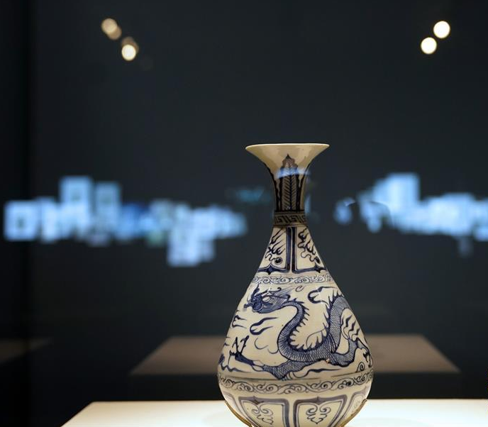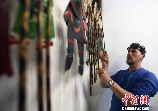 一位俄罗斯媒体代表在欣赏皮影。王磊 摄