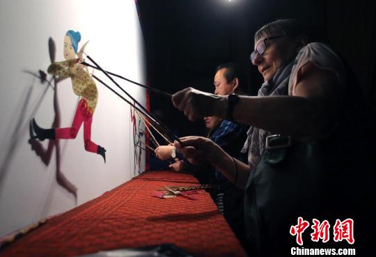 非遗传承人王彪在给俄罗斯媒体代表们介绍皮影。王磊 摄