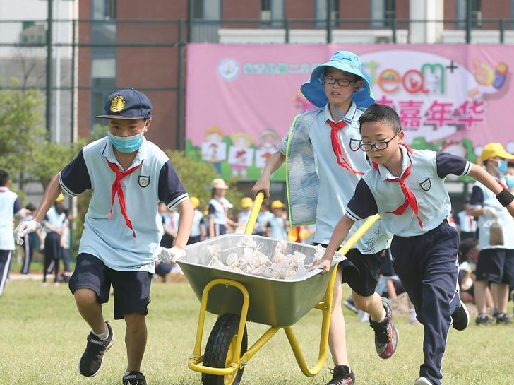 5月27日,在浙江省湖州市安吉县第二小学,学生体验劳技项目。 “六一”国际儿童节临近,多地校园举行丰富多彩的活动,让孩子们在欢声笑语中迎接自己的节日。