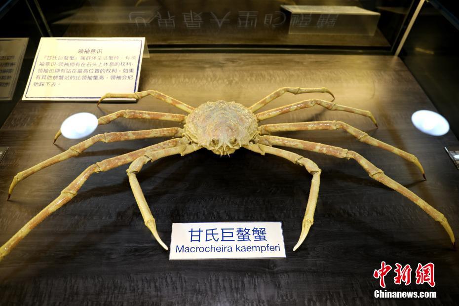 5月28日,“神奇的盔甲武士”螃蟹博物馆在厦门曾厝垵文创中心开馆,上千只从澎湖而来的螃蟹标本集中进行展示。图为甘氏巨螯蟹体长两米多,为世界上最大型的螃蟹。中新社记者 李思源 摄