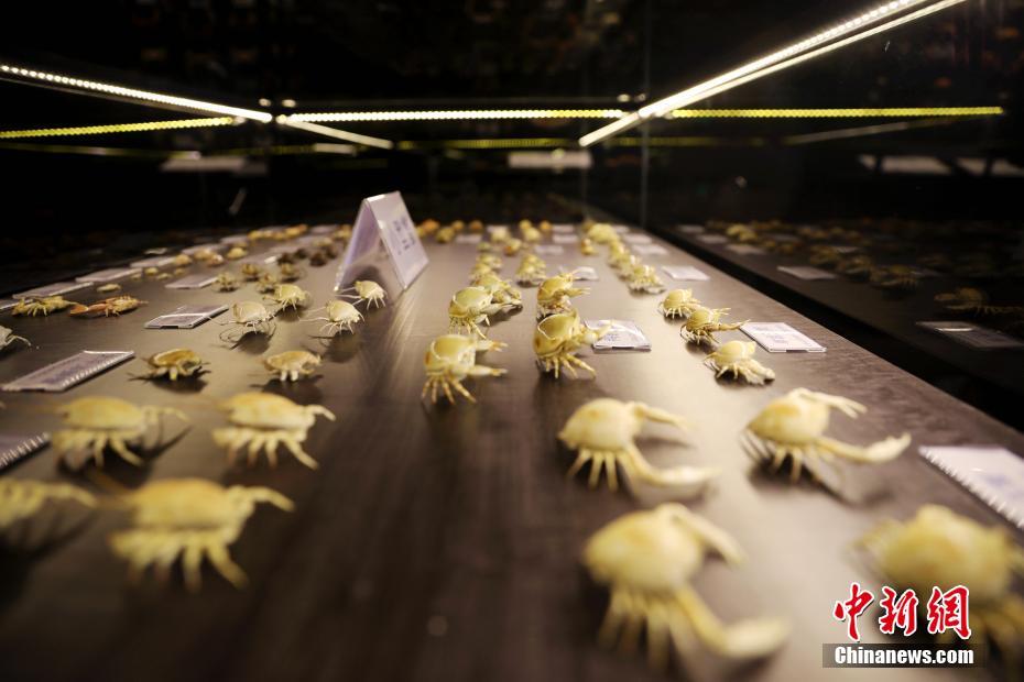 5月28日,“神奇的盔甲武士”螃蟹博物馆在厦门曾厝垵文创中心开馆,上千只从澎湖而来的螃蟹标本集中进行展示。图为小型蟹。中新社记者 李思源 摄