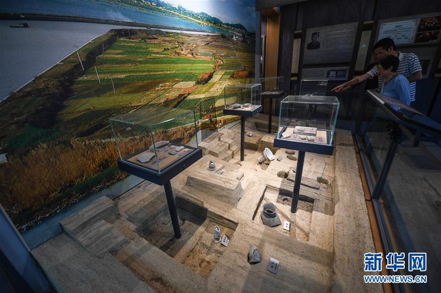 5月29日,村民在潞村参观钱山漾文化展示厅。新华社记者 徐昱 摄