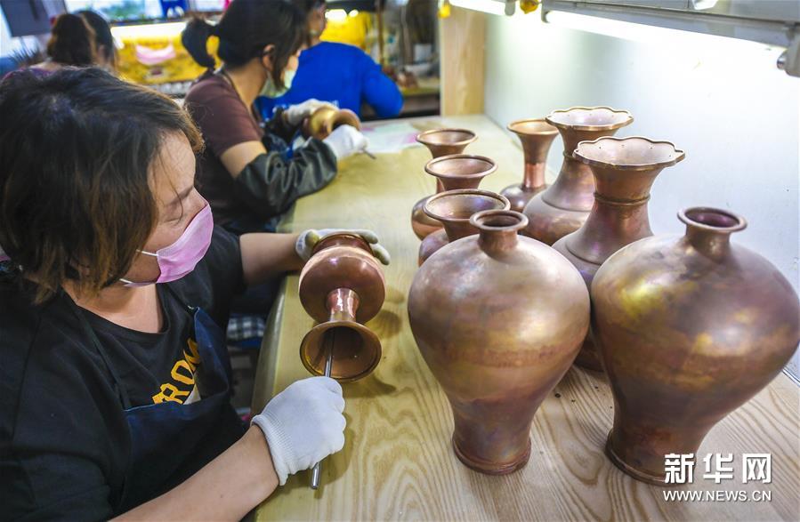 6月18日,景县龙华镇铜胎画珐琅手工艺人在修整铜胎胎形。 近年来,河北景县坚持传承当地传统铜胎画珐琅技艺。目前,当地铜胎画珐琅从业者有800多人,相关产品远销国外,带动了当地农民增收。 新华社记者 李晓果 摄
