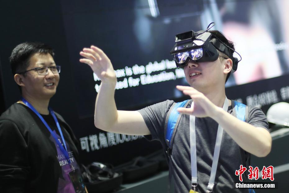 6月26日,2019南京创新周黑科技展在南京国际博览中心开展,中智行5G“AI无人驾驶汽车”、让生活更智能的智慧家居、沉浸式星空数字意境、纳米黑金……超过400家海内外高科技企业、500余件智能黑科技产品汇聚现场。据介绍,该展览通过“仰望星空,与未来对话”的沉浸式数字意境,借助“洞悉、洞见、洞创、洞融”四大主题篇章,串联成一条“科技之奥,别有洞天”的展览主线,多角度深度呈现海内外前沿技术,让观众深度感知引领性未来场景,体验由“黑科技”塑造的“未来之窗”。图为民众体验“黑科技”。 中新社记者 泱波 摄