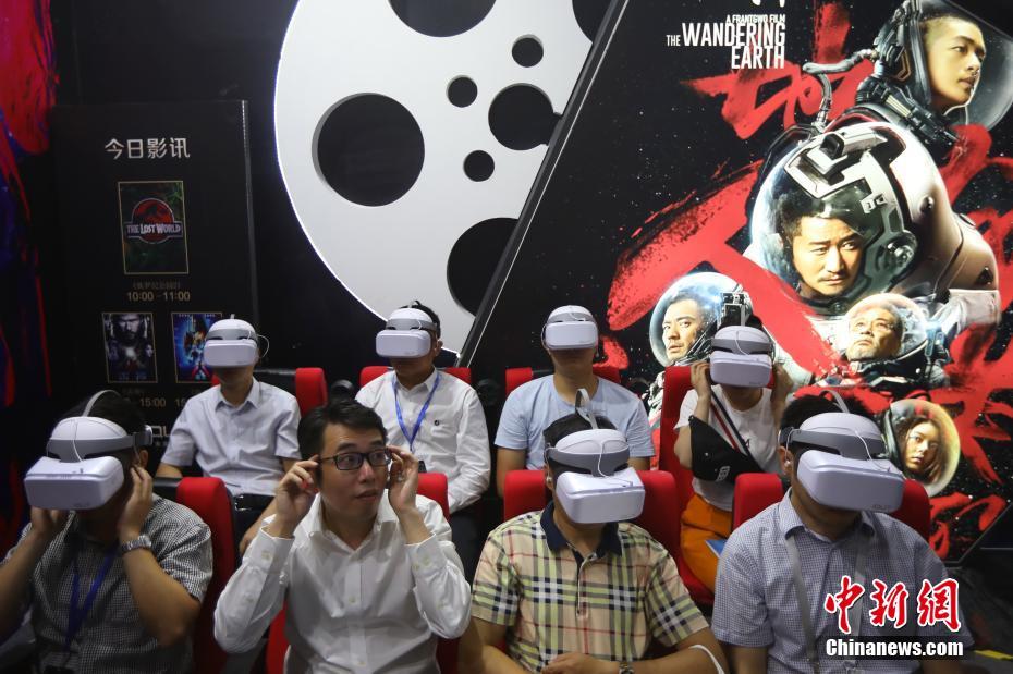6月26日,2019南京创新周黑科技展在南京国际博览中心开展,中智行5G“AI无人驾驶汽车”、让生活更智能的智慧家居、沉浸式星空数字意境、纳米黑金……超过400家海内外高科技企业、500余件智能黑科技产品汇聚现场。据介绍,该展览通过“仰望星空,与未来对话”的沉浸式数字意境,借助“洞悉、洞见、洞创、洞融”四大主题篇章,串联成一条“科技之奥,别有洞天”的展览主线,多角度深度呈现海内外前沿技术,让观众深度感知引领性未来场景,体验由“黑科技”塑造的“未来之窗”。图为观众戴上VR眼镜观看电影。 中新社记者 泱波 摄