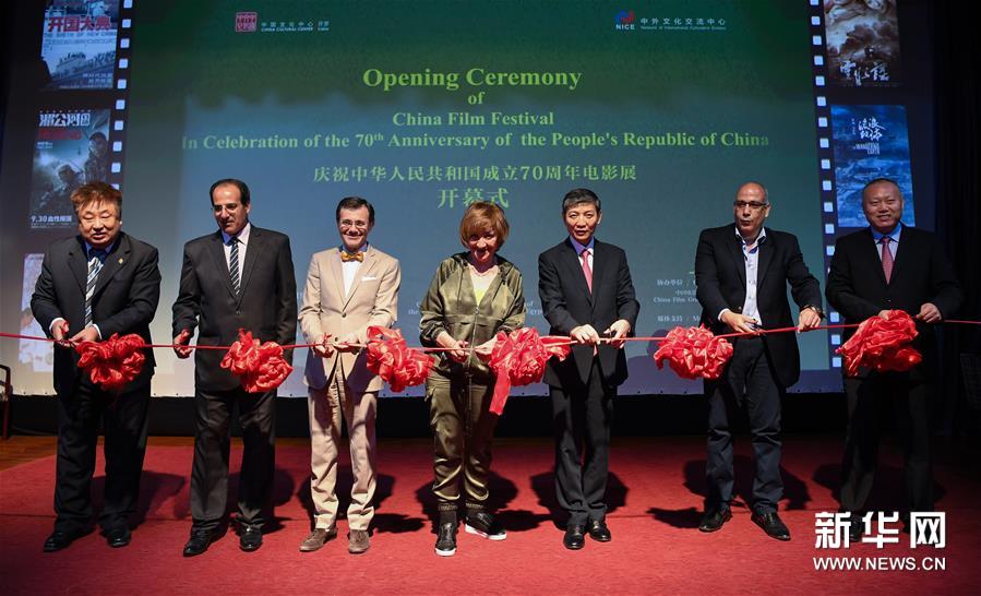 6月30日,在埃及开罗,嘉宾在庆祝中华人民共和国成立70周年电影展开幕式上剪彩。 庆祝中华人民共和国成立70周年电影展6月30日在埃及首都开罗中国文化中心开幕,6部中国电影将陆续在开罗、亚历山大等城市上映。据中国文化和旅游部中外文化交流中心相关负责人介绍,此次电影展将展映《流浪地球》《开国大典》《甲方乙方》等6部中国各个时期的优秀影片,观众可以通过这些电影了解中国的发展成就和中国文化。 新华社记者 李琰 摄