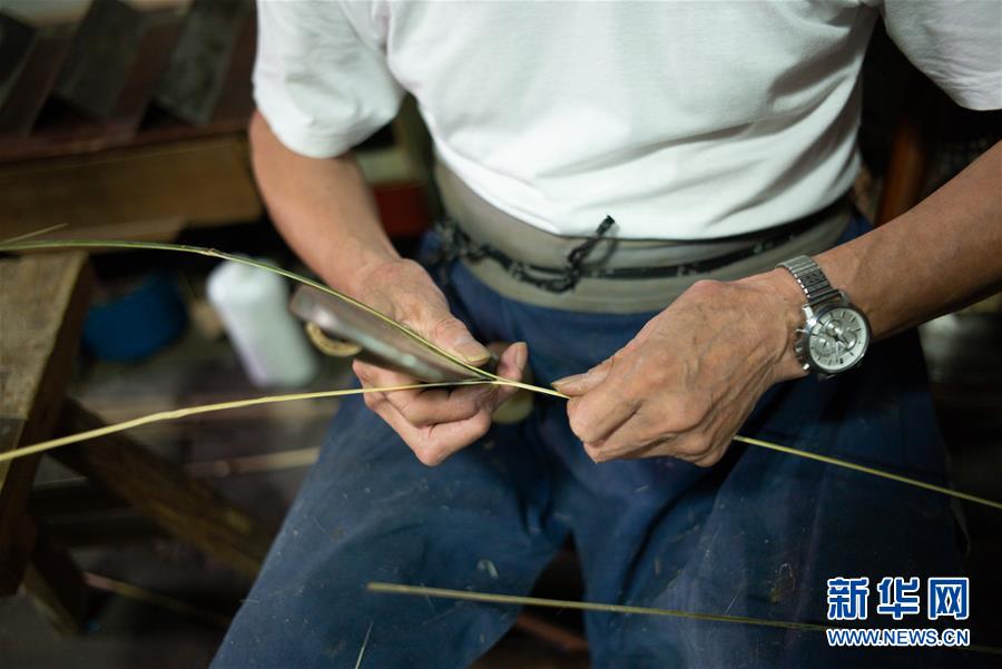 7月4日,马吉林在德清县新市镇自己的竹编店铺制作竹编。 今年74岁的马吉林是浙江省湖州市德清县新市镇马氏竹编技艺传承人,他10岁开始跟随父亲马孝泉学做竹编,15岁随父亲走南闯北做手艺。