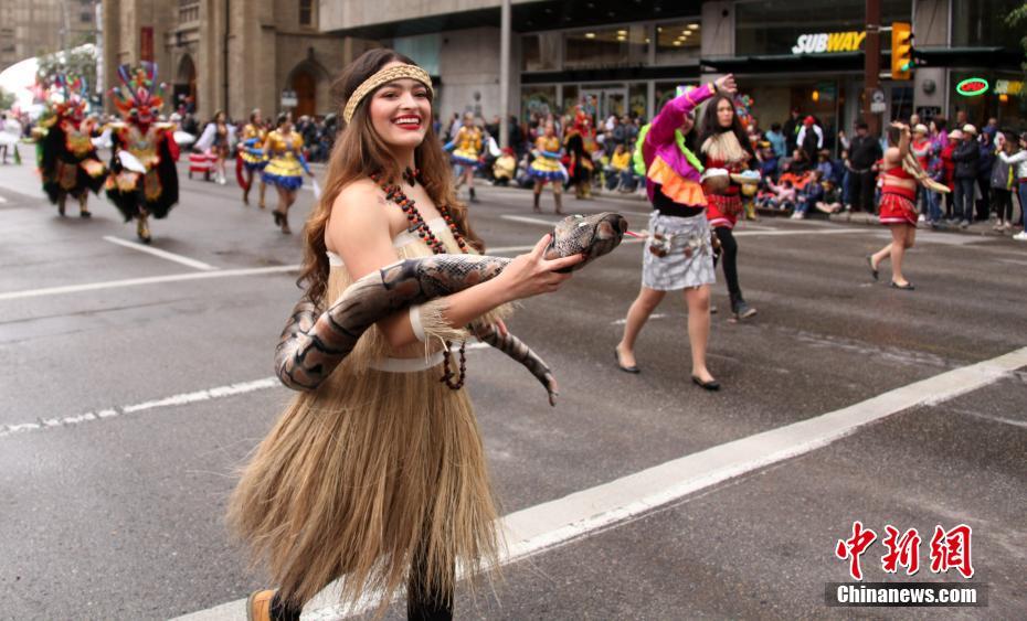 当地时间7月5日,作为2019年加拿大卡尔加里牛仔节开幕重头戏的牛仔节游行盛大登场。卡尔加里牛仔节至今已有107年历史,这一为期10天的活动已成为一年一度的城中盛事,每年节庆期间可吸引游客逾百万人次。图为造型别致的游行参加者。中新社记者 余瑞冬 摄