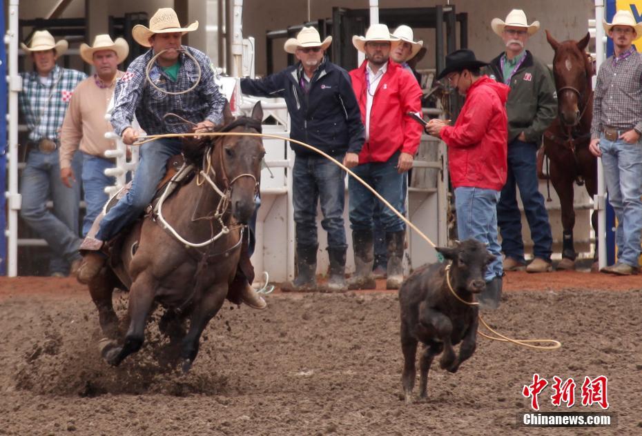 当地时间7月5日,在当天开幕上2019年加拿大卡尔加里牛仔节上,一位参加套牛犊比赛的牛仔正施展套索绝技。卡尔加里牛仔节至今已有107年历史,这一为期10天的活动已成为一年一度的城中盛事,每年节庆期间可吸引游客逾百万人次。中新社记者 余瑞冬 摄