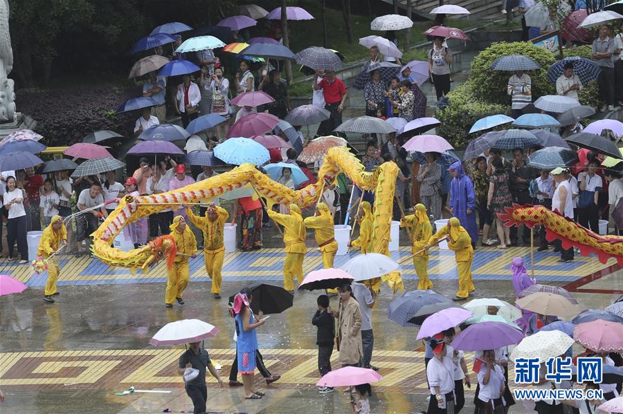 7月8日,人们表演舞龙。 当日是农历六月初六,贵州省黔东南苗族侗族自治州剑河县群众载歌载舞,以舞龙、跳水鼓舞、民歌对唱等方式欢度“六月六”。 新华社发(杨家孟 摄)