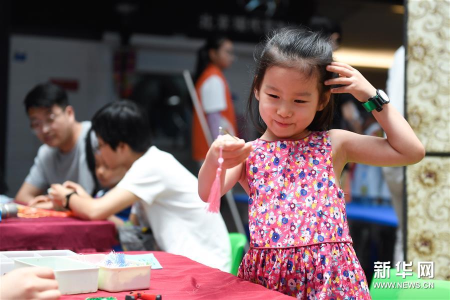 7月6日,小朋友在汉服传统文化节主题活动上学习制作步摇。 新华社记者 黄宗治 摄