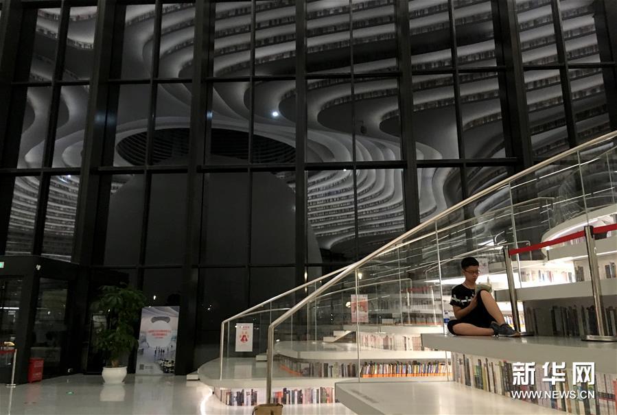 7月16日晚,市民在天津滨海新区图书馆读书。 近日,为进一步丰富市民夜间文化生活,天津市滨海新区文化和旅游局推出公共文化服务的利民举措。从7月8日开始,天津滨海新区图书馆、滨海新区博物馆和滨海新区美术馆等文化场馆开展夜间延时服务,延时开放至22点至22点30分。 新华社记者岳月伟摄
