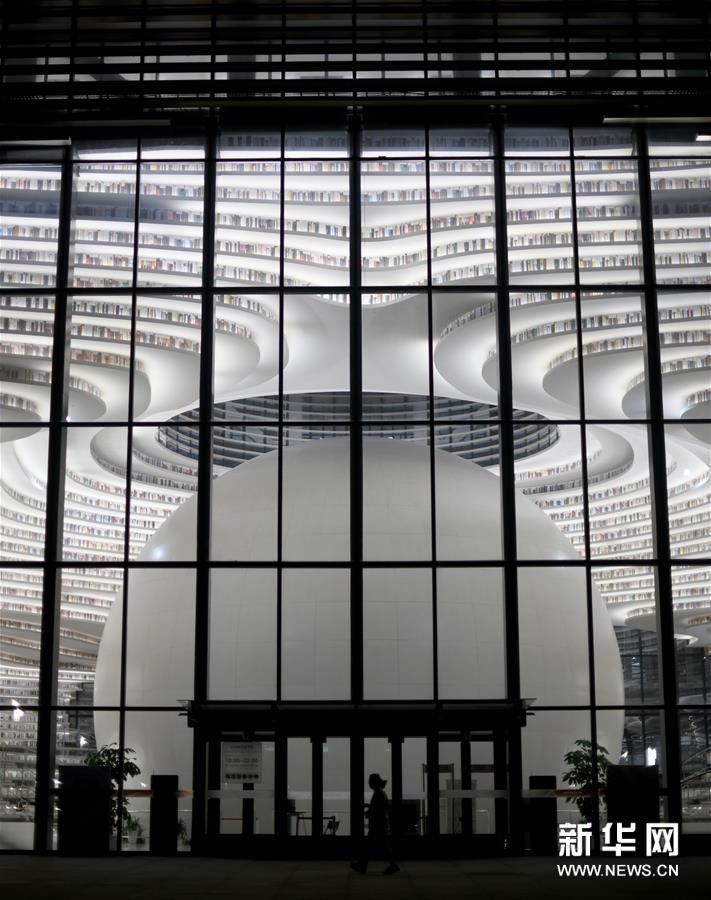 7月16日晚,市民从天津滨海新区图书馆旁走过。 近日,为进一步丰富市民夜间文化生活,天津市滨海新区文化和旅游局推出公共文化服务的利民举措。从7月8日开始,天津滨海新区图书馆、滨海新区博物馆和滨海新区美术馆等文化场馆开展夜间延时服务,延时开放至22点至22点30分。 新华社记者岳月伟摄