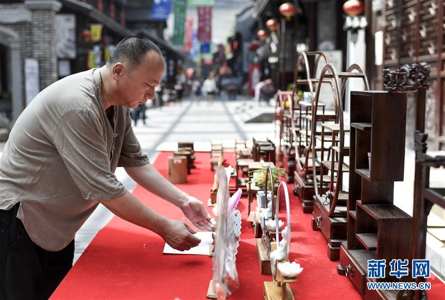 杨光权在工作室外整理制作的铁艺与木雕相融合的工艺品摆件(7月22日摄)。 今年50岁的杨光权,自幼跟随家中长辈学习打铁技艺,对手工制品充满兴趣。他年轻时干过铁匠,做过买卖。2013年,他萌发了制作金属工艺品的念头,便重新拾起打铁锤,用着老技艺,做起新产品。 走进杨光权位于长春市巴蜀映巷文化商业街区的工作室,栩栩如生的盔甲勇士、精致的金属摆件让人应接不暇。杨光权认为,若要生存,便必须谋求创新,这样才能既守匠心又保生计。“铁艺的苦是在设计、制作过程中,你看不见的地方。而展现给人们的作品,必须是更符合时代,老百姓更喜闻乐见的形式。” 经过多年经营,如今杨光权的金属工艺品已获得许多人的喜爱。效益越来越好的同时,他还发起了一个草根艺人的合作平台,吸纳了近百位手艺人,涵盖剪纸、刀画、木雕等70多个手工技艺门类,由平台负责为工艺品找市场,让手艺人能够更专心于创作。 “在当下这个时代,手艺人更需要顺应生活,在坚守中创新,这样才能推动传统文化活起来,让老技艺焕发新生机,真正传承下去。”杨光权说。 新华社记者许畅摄
