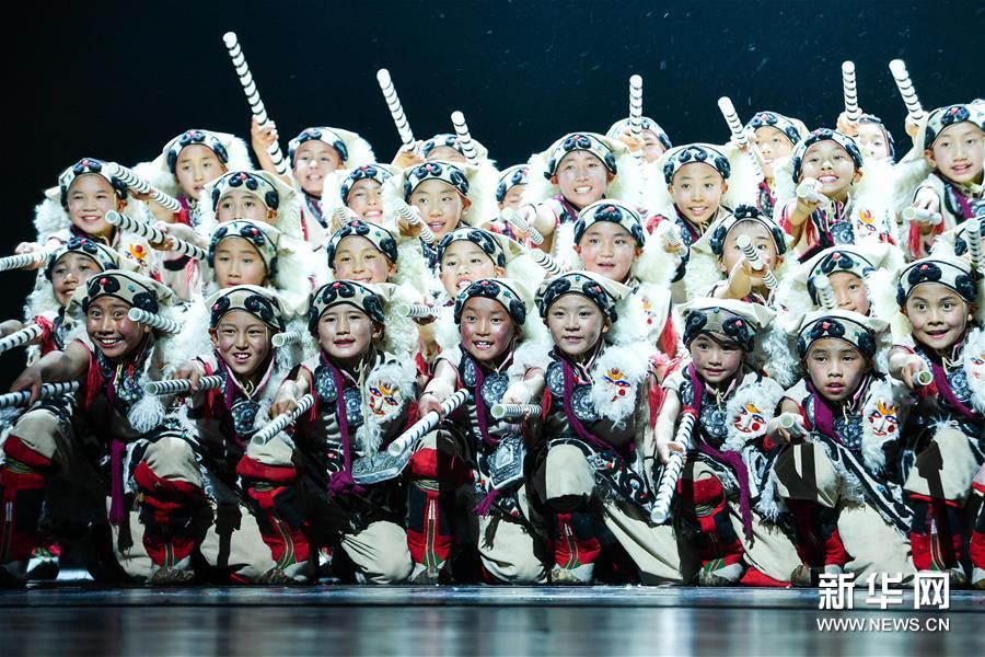 这是西藏那曲市巴青县完小展演的舞蹈《折嘎新生》(7月28日摄)。 7月28日,第十届“小荷风采”全国少儿舞蹈展演在广州拉开帷幕。展演将展示近200个原创舞蹈作品。 新华社记者 刘大伟摄