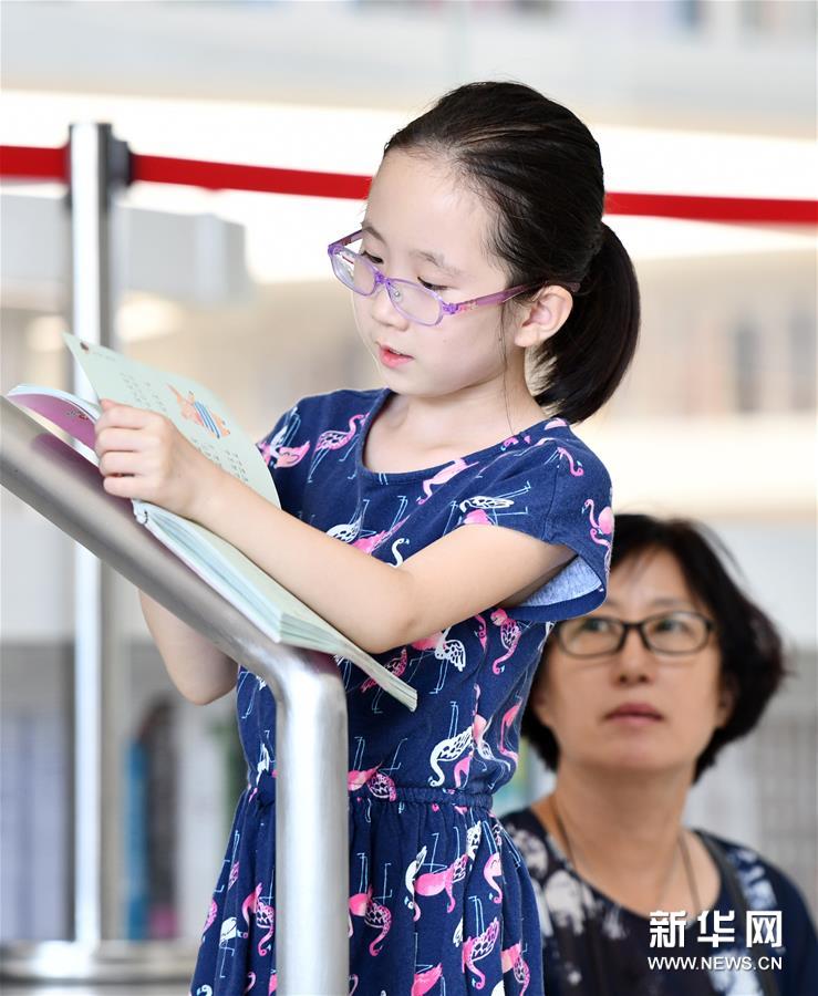 7月31日,小读者在天津滨海新区图书馆里阅读。 进入暑期以来,天津滨海新区图书馆入馆人数持续上升,7月日均进馆人数超过7000人次,不少市民来此阅读学习,消暑度夏。滨海新区图书馆位于天津滨海文化中心,设计立意为“滨海之眼”和“书山有路勤为径”。2017年10月1日正式开馆,目前已经藏书100多万册。 新华社记者 李然 摄