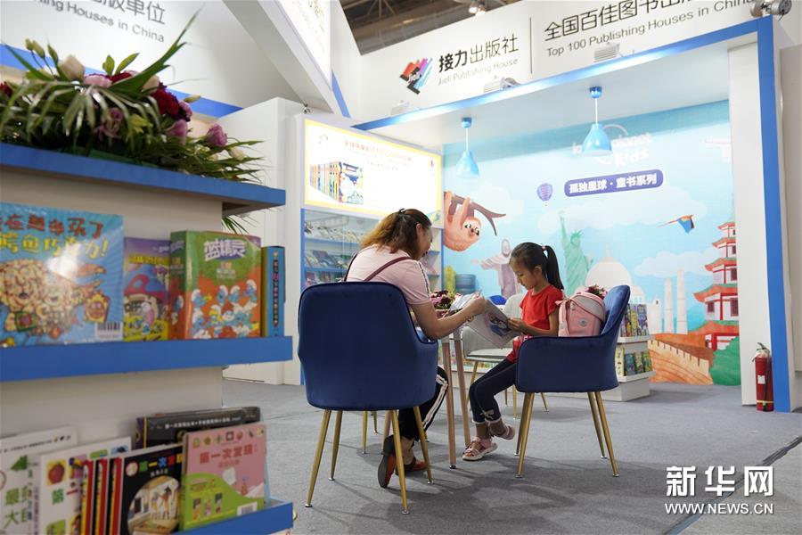 8月21日,观众在博览会上阅读图书。 当日,第二十六届北京国际图书博览会暨第十七届北京国际图书节,以及第九届中国数字出版博览会,在中国国际展览中心新馆开幕。 新华社记者 金良快 摄