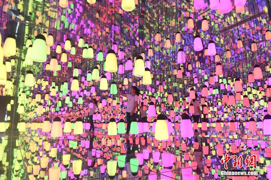 图为五彩发光灯吸引民众前来体验。陈超 摄