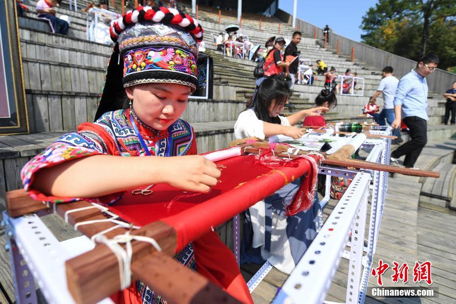 9月28日,首届武陵山区刺绣大赛在湖南张家界大峡谷举行,来自湖南、湖北、重庆等地的近70位绣娘同台竞技,现场表演“飞针走线”的绝活。