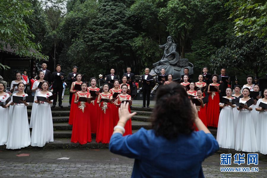 10月7日,在德阳市钟鼓楼广场,德阳市老人协会的老人们在演唱经典老歌。 当日,四川省“我们的节日·重阳”示范活动在德阳启幕,诗朗诵、太极拳表演、插茱萸、登山等特色活动,吸引了众多市民参与。 新华社记者 江宏景摄