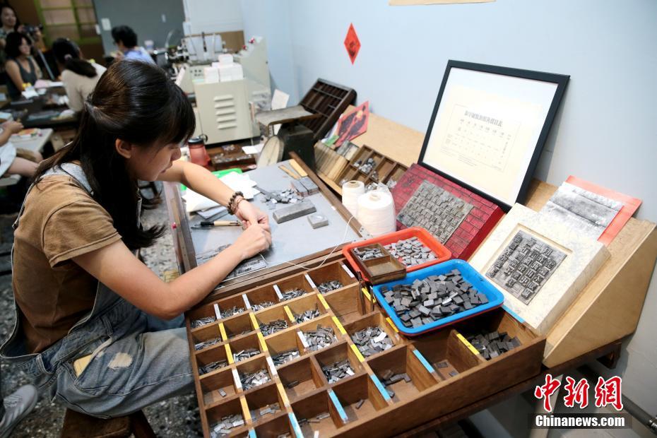 10月10日,台北太原路上的“日星铸字行”内,工作人员正在进行铅字排版。该铸字行开办于1969年,专门制作铅活字及铅字印刷,是台北仅存的一家铸字行。中新社记者 张远 摄