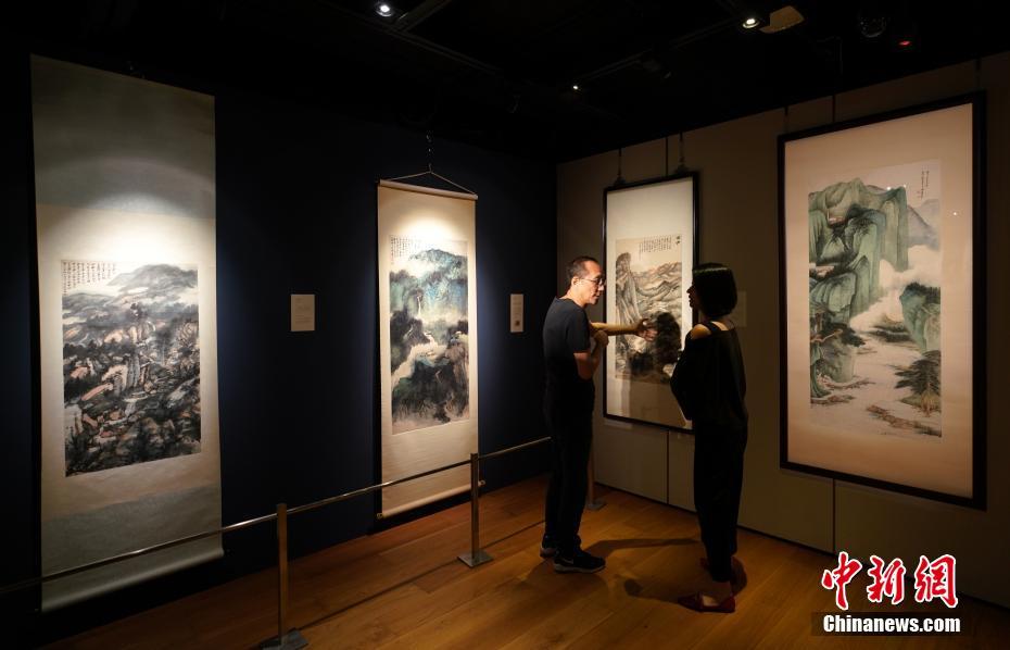 为纪念张大千诞辰120周年,香港苏富比主办、台北羲之堂协办的“无象之象——张大千精品展”将于10月12日至11月9日在香港举行。展览汇集张大千不同时期、不同风格的代表作近60幅,参展作品由画家家属、香港和海外收藏家提供,部分作品首次向公众展示。图为观众点评画作。中新社记者 张炜 摄