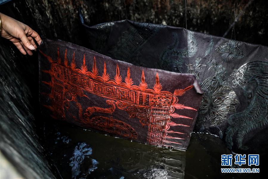 10月28日,杨芳在家中对绘好的蜡画进行染制。新华社记者 欧东衢 摄