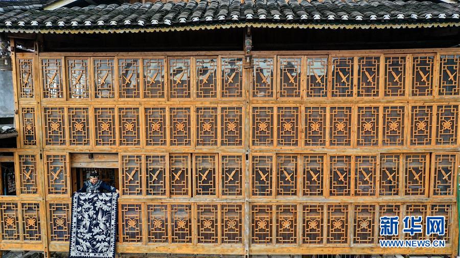 10月28日,杨芳在家中晾晒蜡染制品。新华社记者 欧东衢 摄