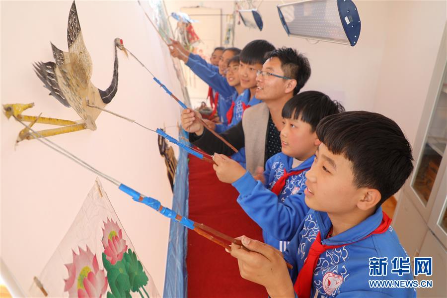 10月31日,丰润区李钊庄镇大漫港小学学生在表演皮影戏。 近年来,河北省唐山市丰润区教育部门积极开展“传统文化进校园”系列活动,充分利用民间艺术资源,开设剪纸、皮影、戏曲等民间艺术课,让学生感受传统文化魅力。 新华社记者 牟宇 摄