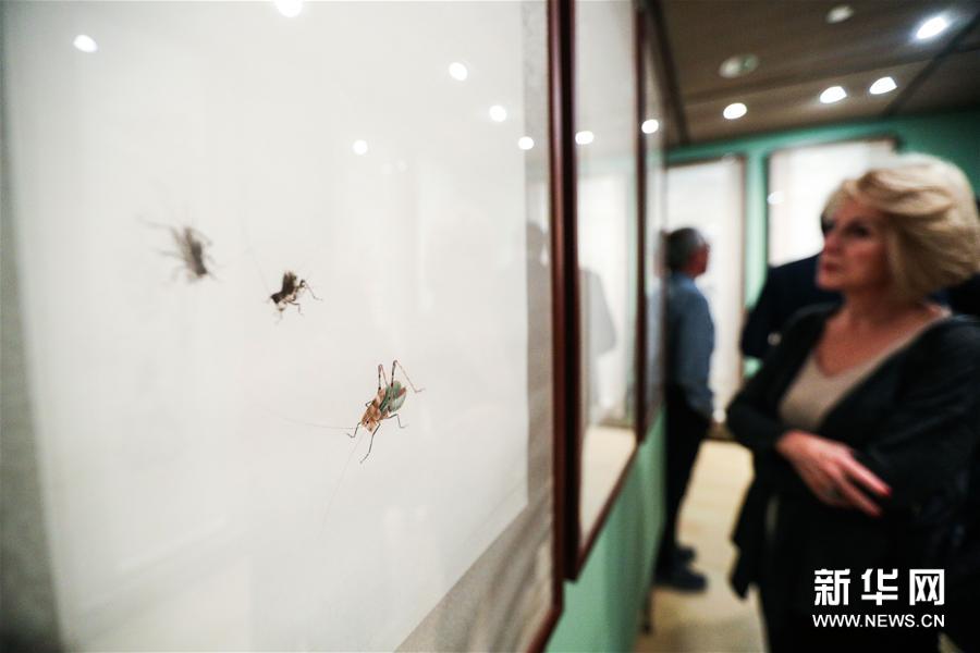 11月12日,由北京画院、中希经济文化发展促进会、塞奥哈拉基斯艺术基金会美术馆主办的“此中真味——齐白石艺术里的中国哲思”展览在希腊首都雅典塞奥哈拉基斯艺术基金会美术馆开幕。此次展览为期两个月,展出126件齐白石艺术作品,旨在展现中国美学的独特韵味,促进中、希两国在文化艺术领域的交流。 新华社记者 郑焕松 摄