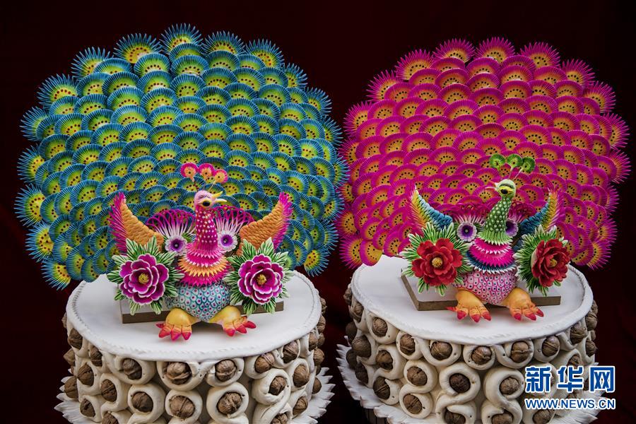 12月4日拍摄的李金贤制作的花馍作品《孔雀开屏》。新华社记者陶明摄