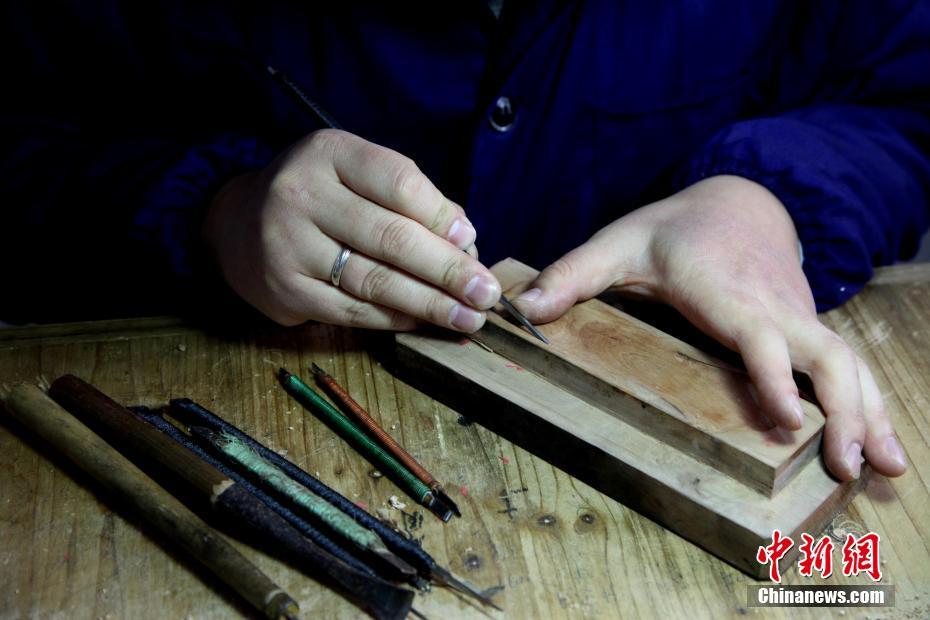 图为项颂雕刻墨模。 吴建平 摄