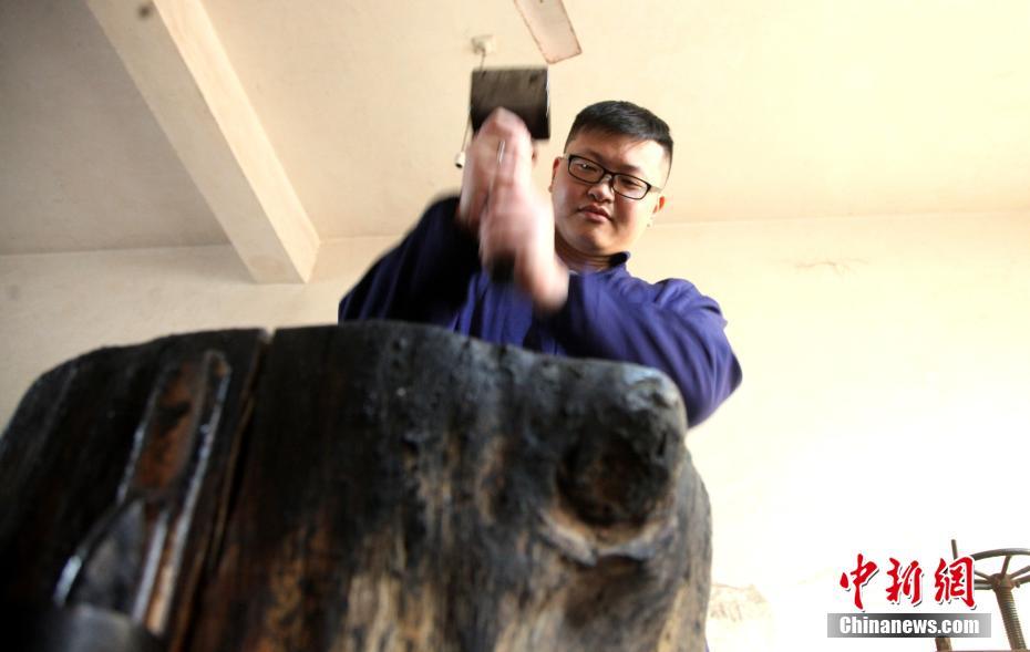图为项颂在锤墨。 吴建平 摄
