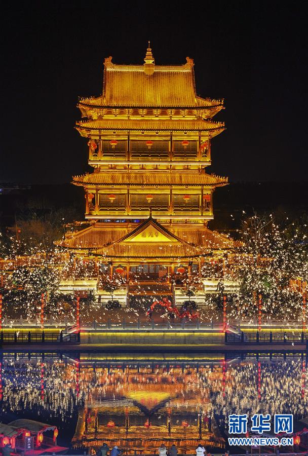 12月31日晚,山东省枣庄市台儿庄古城推出“火龙钢花”“威风锣鼓”“渔灯舞”等民俗表演迎接新年的到来。