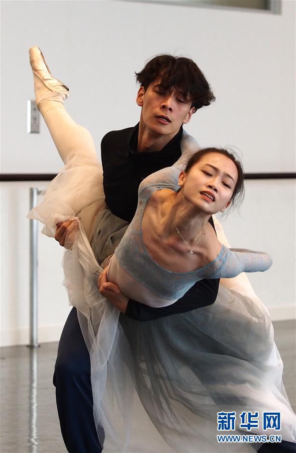 11月2日,上海芭蕾舞团首席明星吴虎生(后)和主演戚冰雪在排练厅排练上芭版芭蕾舞剧《茶花女》。新华社记者 任珑 摄