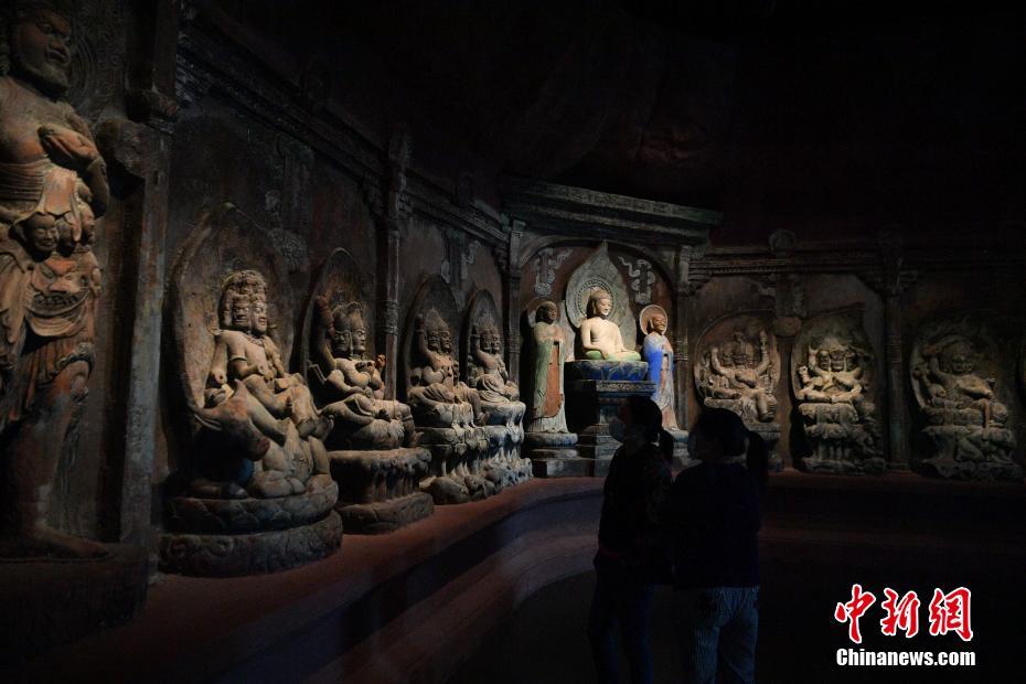3月31日,观众在云南省博物馆观看展览。当日,在严格落实疫情防控措施的前提下,云南省博物馆恢复开放,每日限额2000人。观众入馆需测量体温,并扫描二维码进行登记,同时全程佩戴口罩,排队和观展时需保持1米以上距离。中新社记者 刘冉阳 摄