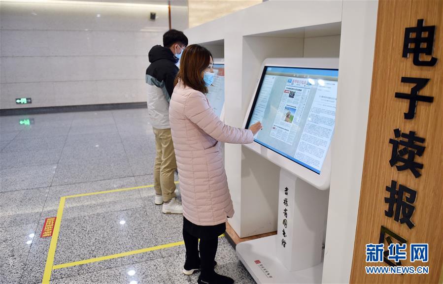 4月22日,市民在吉林省图书馆电子读报区阅读报刊。 自3月份恢复开馆以来,吉林省图书馆做好疫情防控各项措施,不少市民经过实名制预约前来借阅书籍。 新华社记者 林宏 摄
