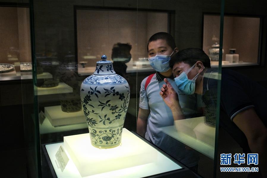 5月1日,在首都博物馆,参观者看展。 当日起,北京地区博物馆陆续恢复开放。 新华社记者 彭子洋 摄