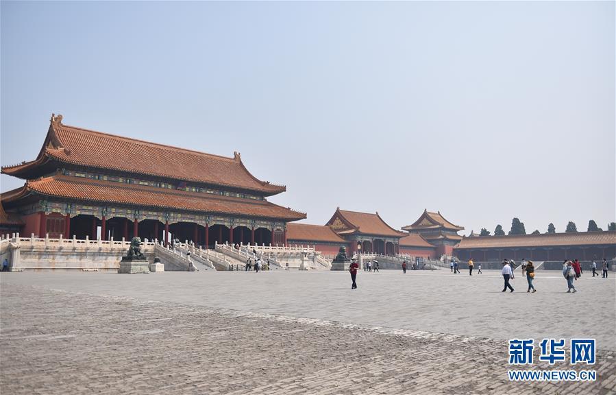 5月1日,游客在故宫博物院参观。 当日起,北京地区博物馆陆续恢复开放。 新华社发(陈钟昊摄)
