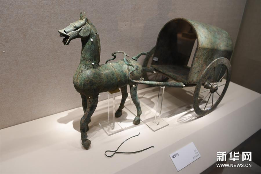 这是5月17日在南京博物院特展馆拍摄的汉代铜车马。 新华社记者 李博 摄