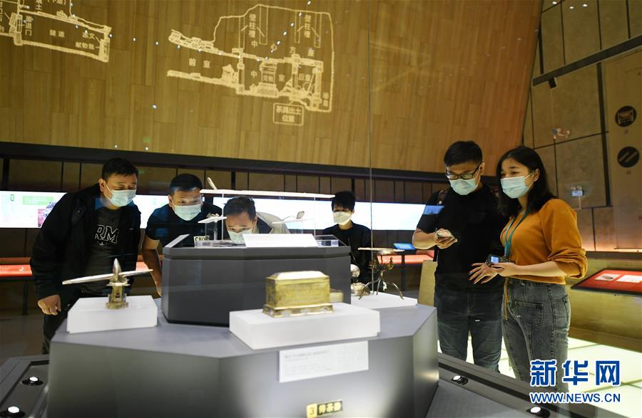 6月16日,游客在陕西历史博物馆国宝厅内参观法门寺出土的皇家茶具。新华社记者 李一博 摄