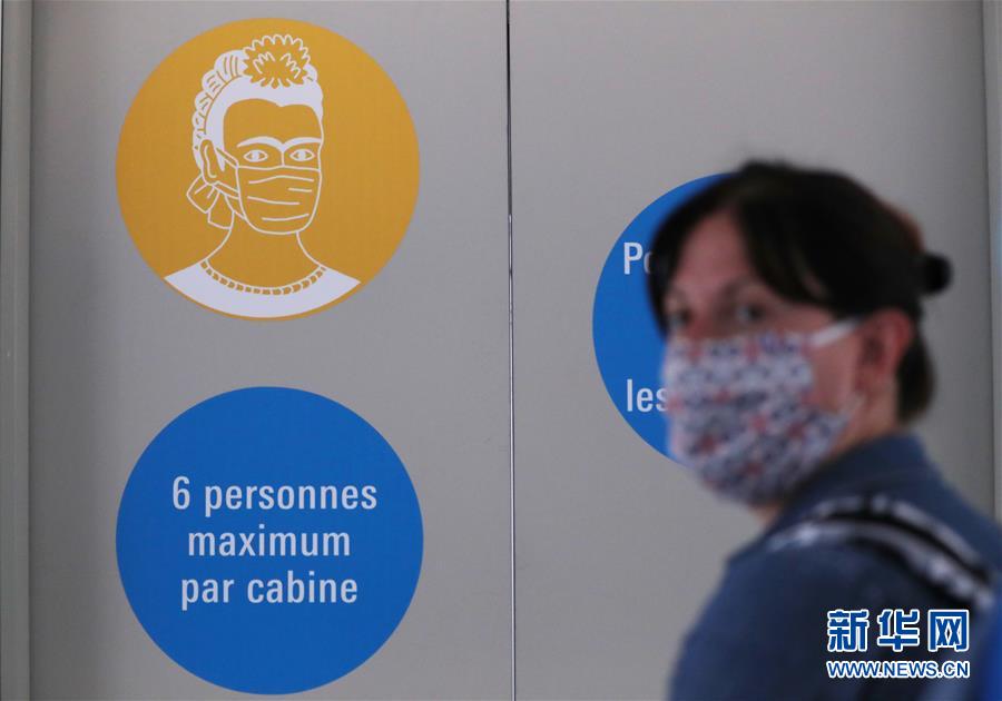 7月1日,法国巴黎蓬皮杜艺术中心的电梯上贴着“请佩戴口罩”和“最多6人乘梯”的标识。 因新冠疫情关闭的法国巴黎蓬皮杜艺术中心于7月1日重新开门迎客。目前,中心只开放6层的临时展区和4、5层的现代艺术常设展区。参观者需提前网上预约参观时段,11岁以上参观者须佩戴口罩,参观过程中保持安全距离。 新华社记者 高静 摄