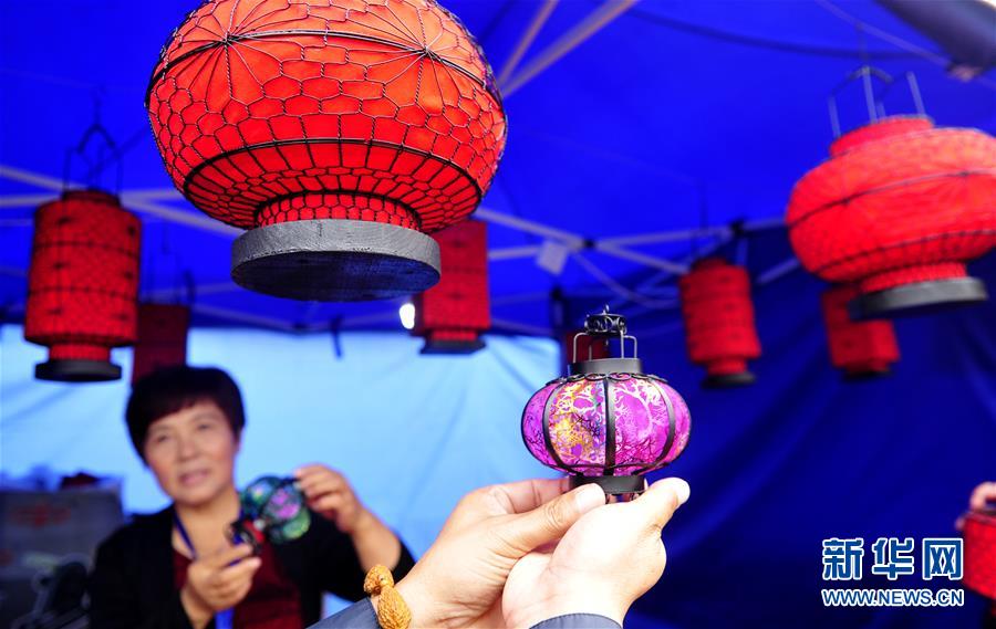 9月24日,在第六届京津冀非遗联展上,河北承德丰宁铁艺灯笼传承人介绍作品。 当日,“匠心华韵 运河传承 流动的文化——大运河非遗大展暨第六届京津冀非遗联展”在河北沧州大运河生态修复展示区开幕。此次非遗联展为期三天,来自京津冀的186个特色非遗项目和精美作品将为观众献上一道丰盛的非遗文化大餐。 新华社发(苑立伟 摄)