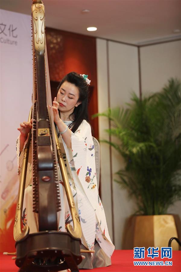10月12日,中央民族乐团国家一级演奏员吴琳在论坛上表演箜篌独奏《梅花三弄》。新华社记者 任沁沁 摄