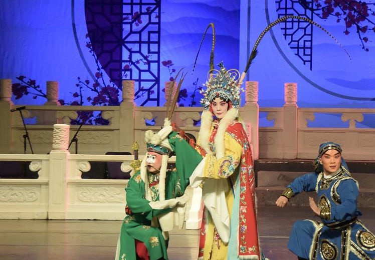 1月10日,天津市青年京剧团演员张蕊麟(中)演唱京剧《昭君出塞》选段。